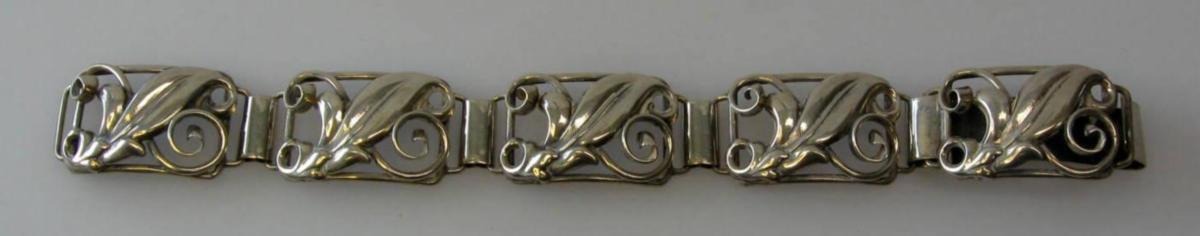 Dansk armbånd i sølv, o. 1930, med bladornamentik.