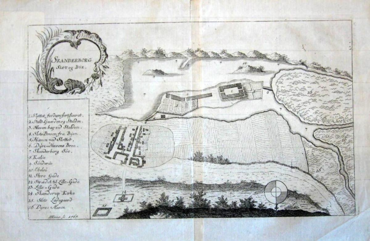 Prospect of Skanderborg Castle and Town, The Danish Atlas, 1767. 23 x 33 cm. Done by Jonas Haas. Engraving.