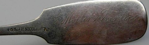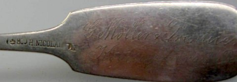 Skipperske, Köningsberg, 19. årh. Stemplet: 800. H. Nicolai. LK. Gave fra mægler: G. Møller & Prentice. Köeningsberg i/Pr.L.: 21,5 cm. Proveniens: Langeland.