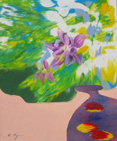 Keiko, Ryu (1932 - ) Japan: Flower. Olie på lærred/plade. Sign.: K. Ryu. 45 x 37 cm. I aluramme.