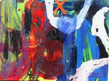 Rud, Jørgen (1960- ) Danmark: Komposition. Olie på lærred. 60 x 80 cm. Signeret.: J.R på bagsiden. I sort svæveramme med sølv forkant. På blændramme etiket fra udstilling.