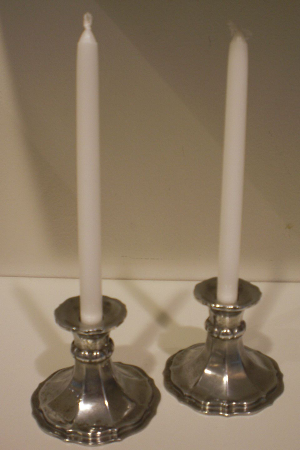 Et par lave tinstager fra Dragsted, ca. 1940. Højde: 6,5 cm.diameter fod: 8 cm. Til jule/kertelys.