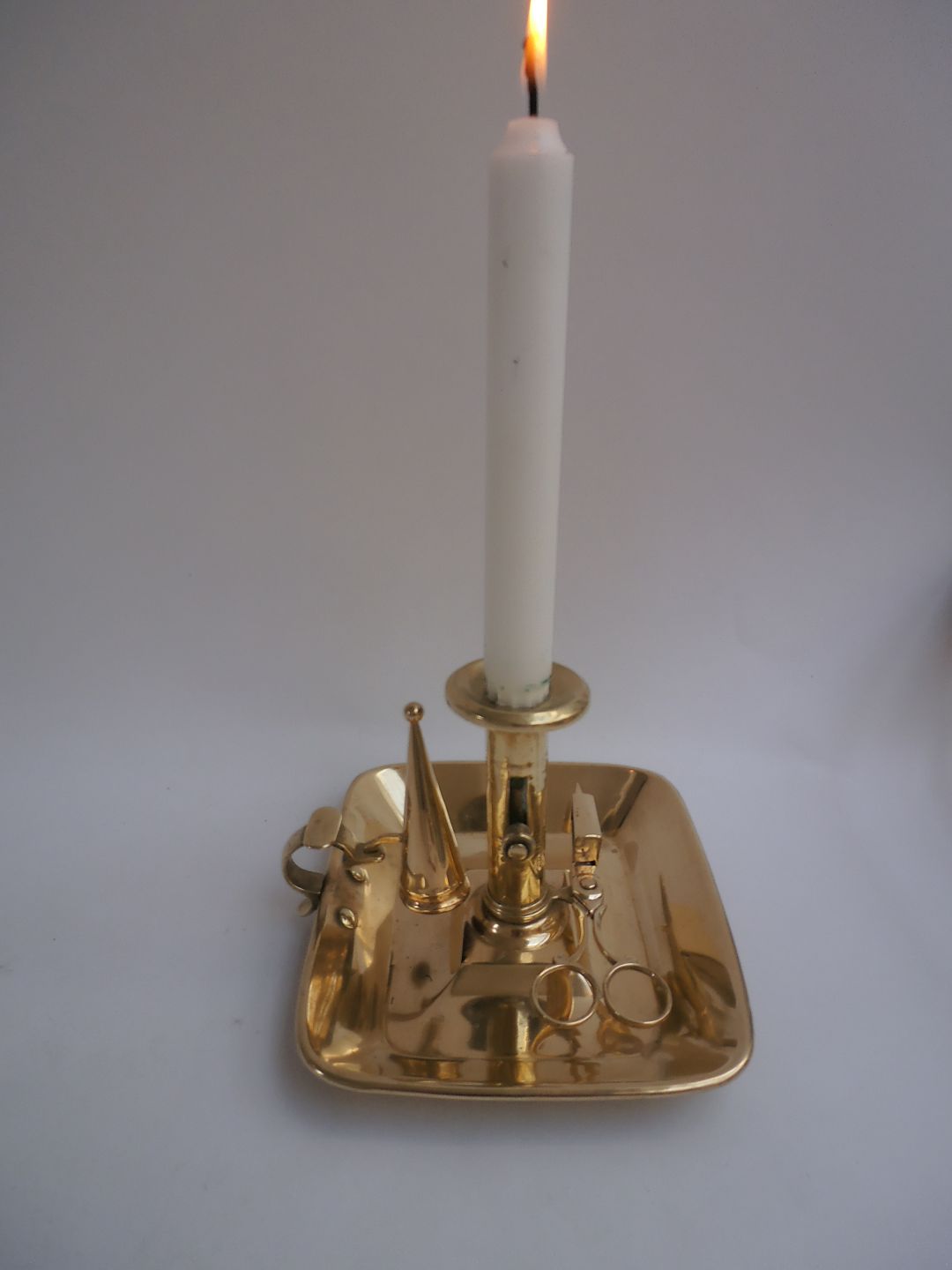 Kammerstage af messing m. lyseslukker samt saks, England ca. 1860.