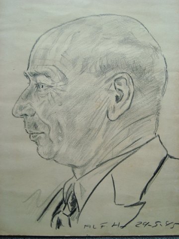 Kultegning af Alf Hansen 1945 - Herreportræt.
