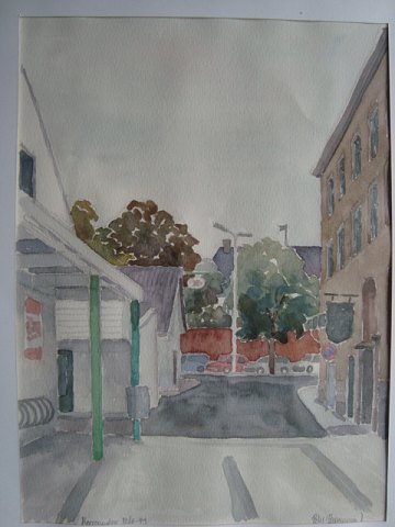 Akvarel af Peter Rasmussen 1993 - Parti fra Nørresundby.