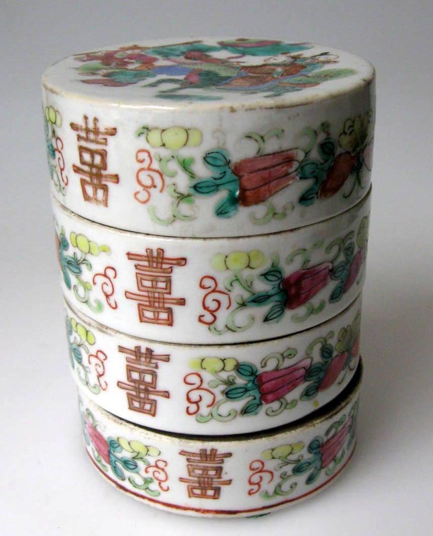 Kinesisk porcelæns madcontainer, 4 delt, 19. årh.