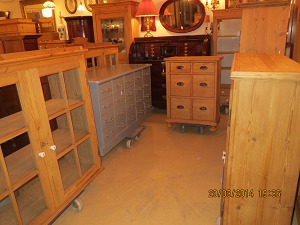 Stor salgsudstilling med restaurerede møbler håndpolerede mahognimøbler, afsyrede fyrretræsmøbler, malede træmøbler, kun originale gamle og antikke møbler.