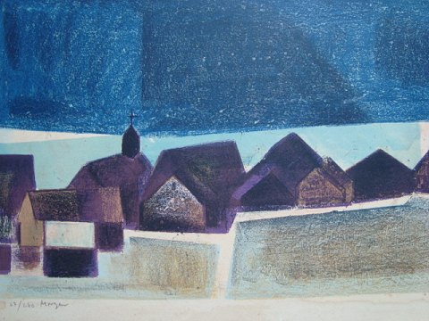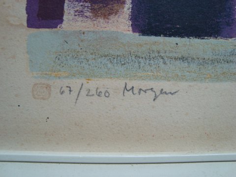Indrammet uden glas - flere fugtpletter og lettere gulnet.