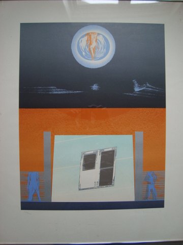 Farvelitografi af Finn Lohmann - Reflektion 1978.