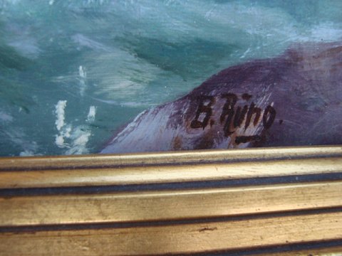 Maleri af B. Rung - Brænding mod kysten.
