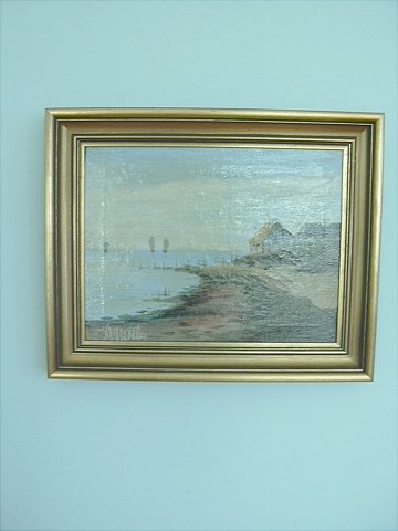 Maleri udsigt ud over bugt sign. A Møller