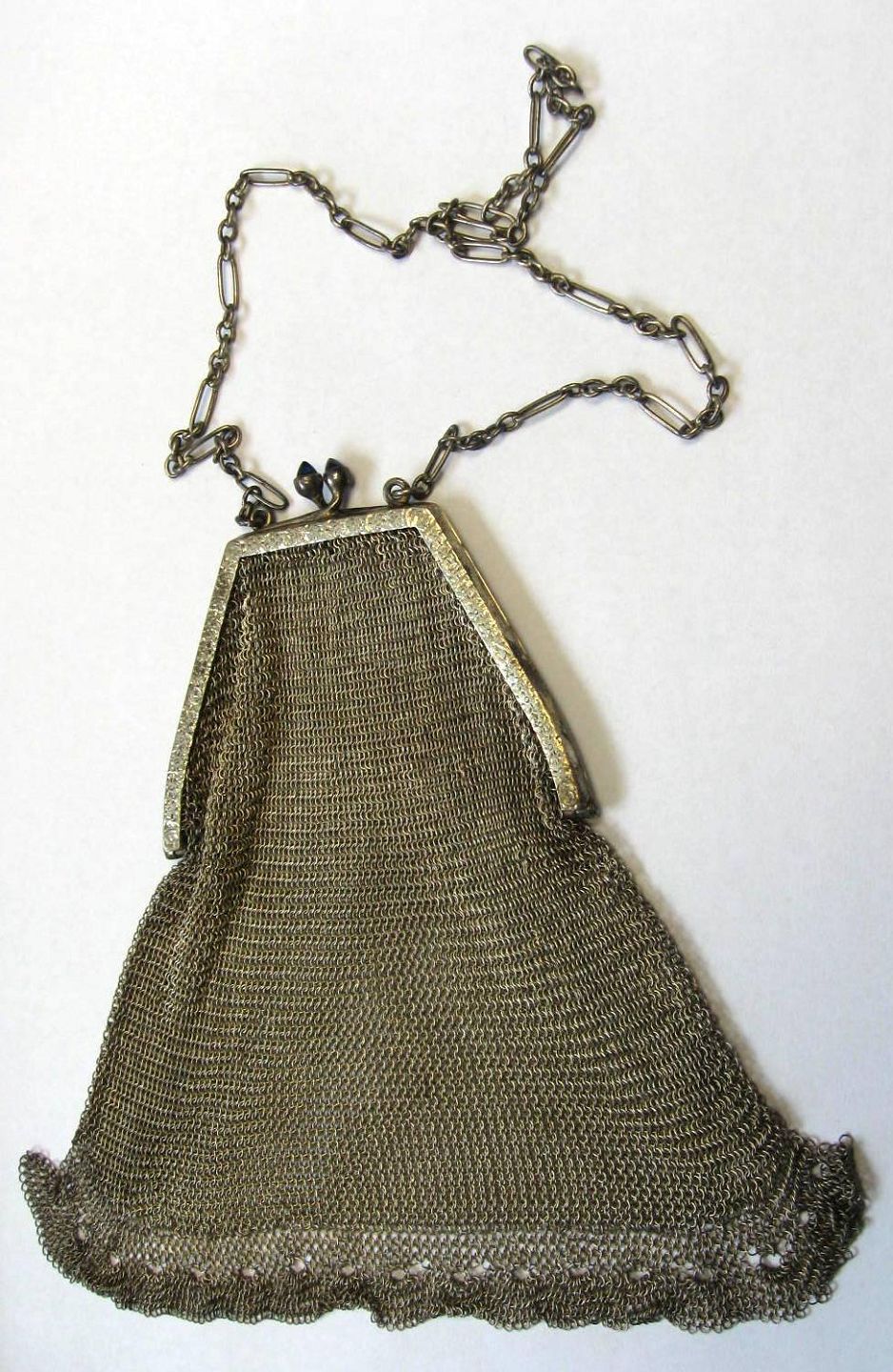 Selskabs taske i sølv med to kegle cabochon safirer. Stemplet 830. Med kæde. H.: 14 cm.