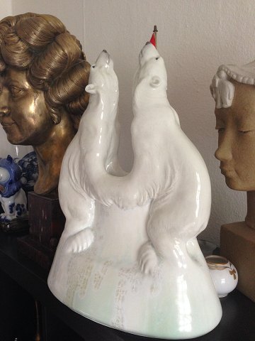 Royal Copenhagen Art Nouveau Crystalline Vase with two Polar Bears by Valdemar Engelhardt. Measures 42cm and is in perfect condition. This is the only vase of this kind ever made.
