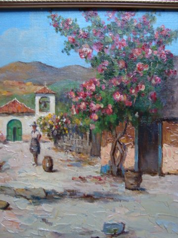 Maleri af Caprino - Sydlandsk byparti med personer.