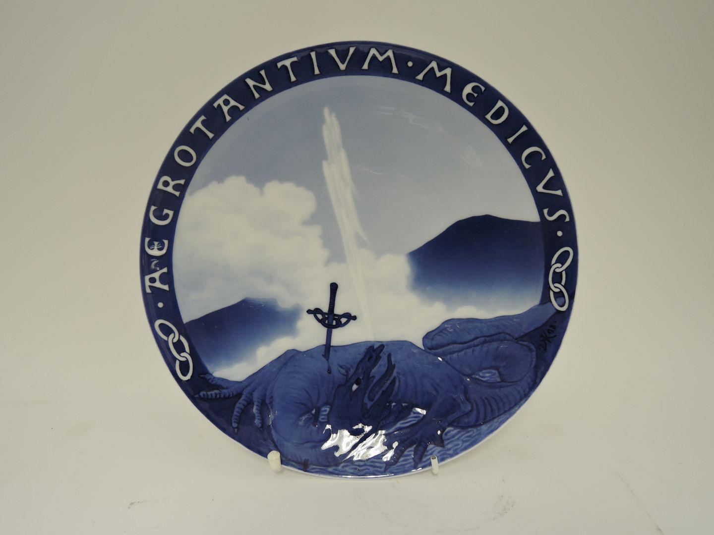 Royal Copenhagen. Mindeplatte #29. Odd Fellow Ordens hospital på Island. Tegnet af Arnold Krog 1899. Diameter 28 cm. (1 sortering)