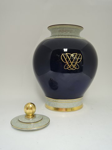 Royal Copenhagen. Craze Vase with lid, Blue. Height 41 cm. (1 quality).