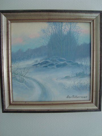 Maleri af Åke Pettersson-Nåw - Vinter på Lyckorna 1990.