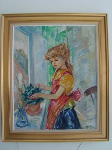 Maleri Bendt Lauridsen - Pige ved vindue.