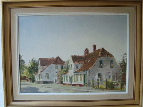 Maleri - Gadeparti fra by - 1963.