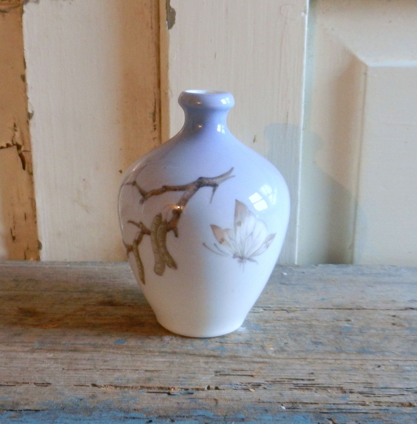 Royal Copenhagen Art Noveau vase dekoreret med sommerfugl og birke gren.