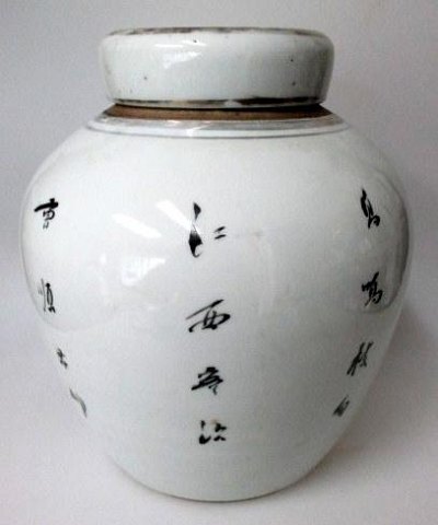 Chinese lidded vase o. 1900, porcelain, with decorations.