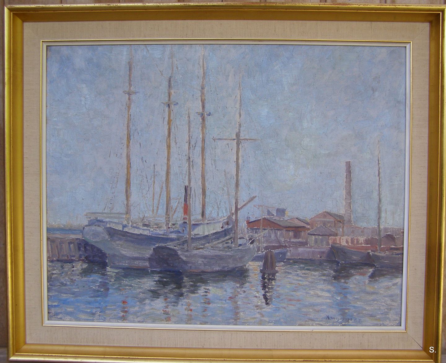 Kongsmark Både i havn 48*60 cm. med ramme 59*72 cm.