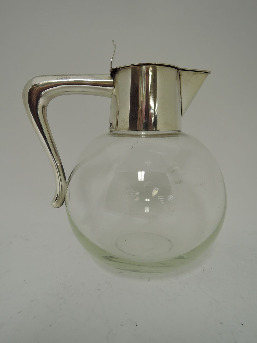 Michelsen. Wine jug. Design: Eigil Jensen. Glass decanter with silver (925). Height 16 cm.