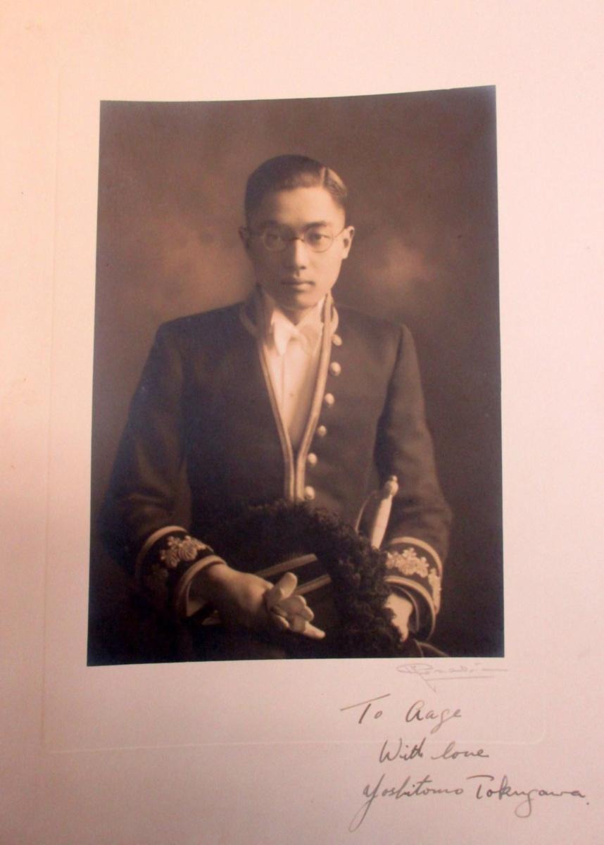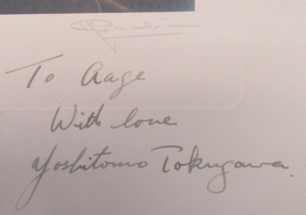 Fotografi af Yoshitomo Tokugawa, Japan, med dedikation.