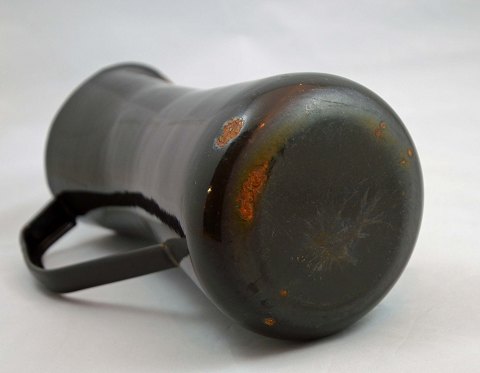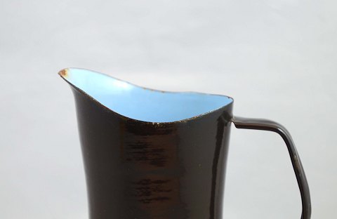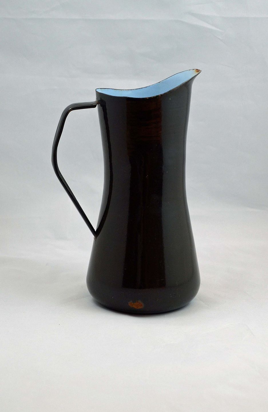 Kande fra 1950'erne i emaljeret jern, sort med lyseblå emalje på indersiden