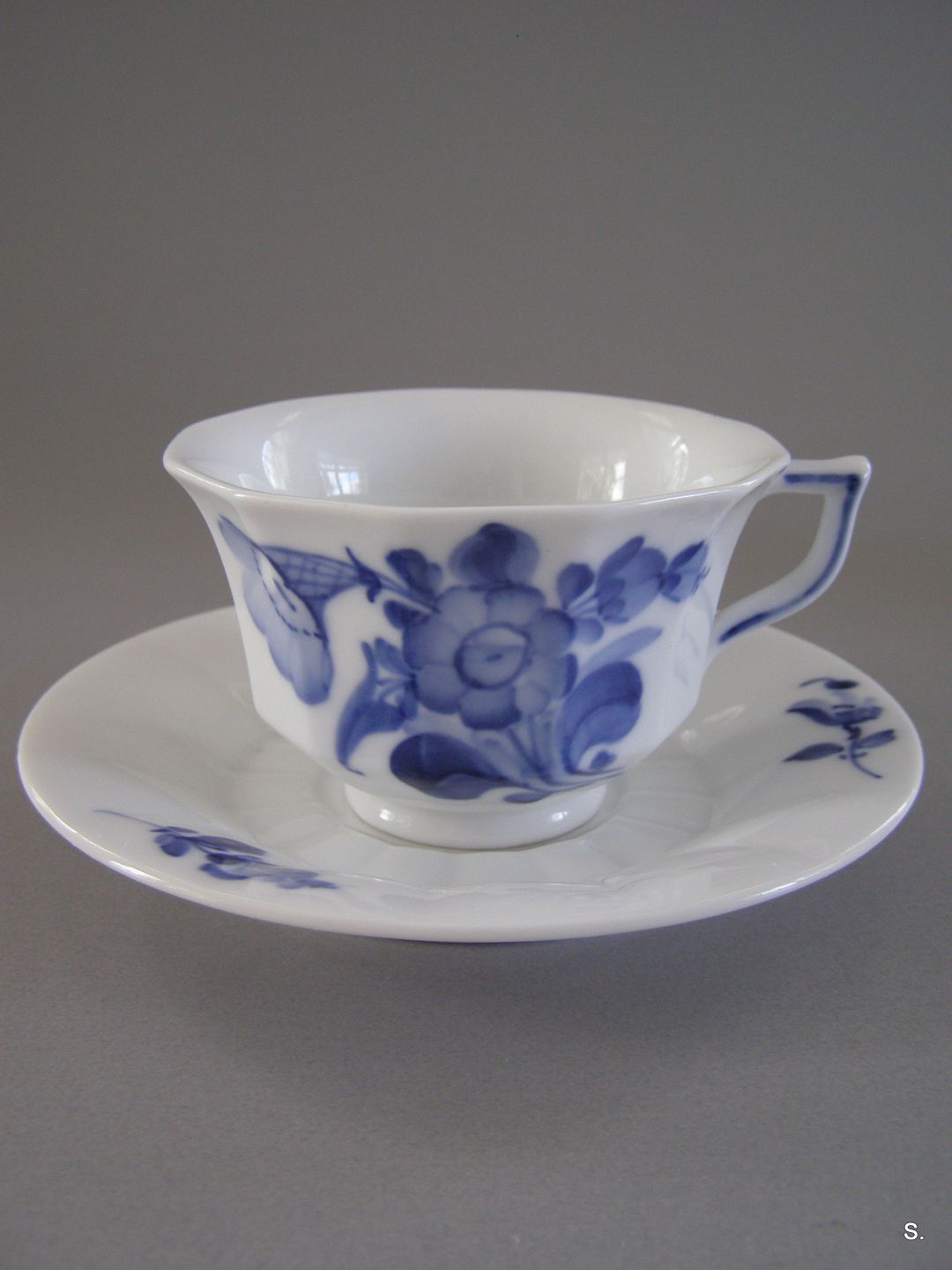 RC Blå Blomst kantet 10/8608 Kop med undertallerken 1. sort.