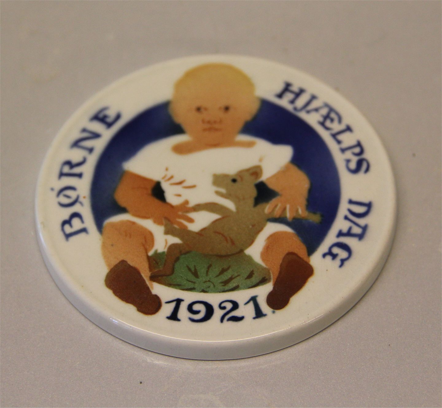 1921 Boy with teddy bear Oscar Willerup 8.7 cm Royal Copenhagen Aluminia Faience Children days plates Child Welfare plates