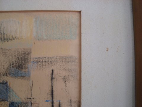 Pastel af Poul Møller - Vue ud over hustage og master 1972.