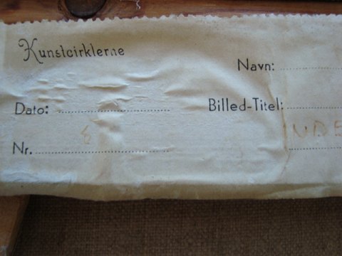 Udstillingsmærkat fra Kunstcirklerne med tilen - Inde i Godsvognen.