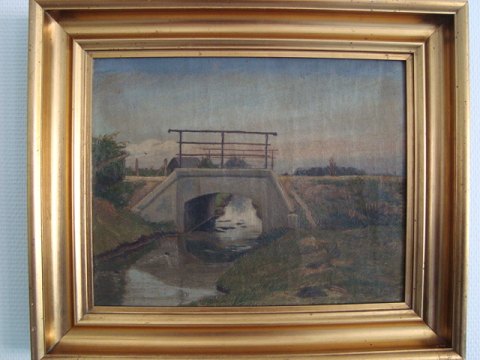 Maleri fra 1924 - bro over vandløb malet af Alexander Svedstrup.