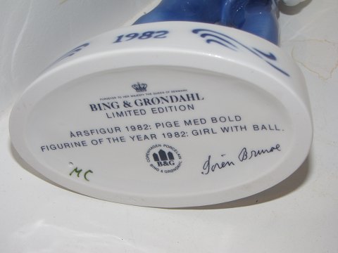 Bing & Grondahl year figurine from 1982 - girl with ball.
