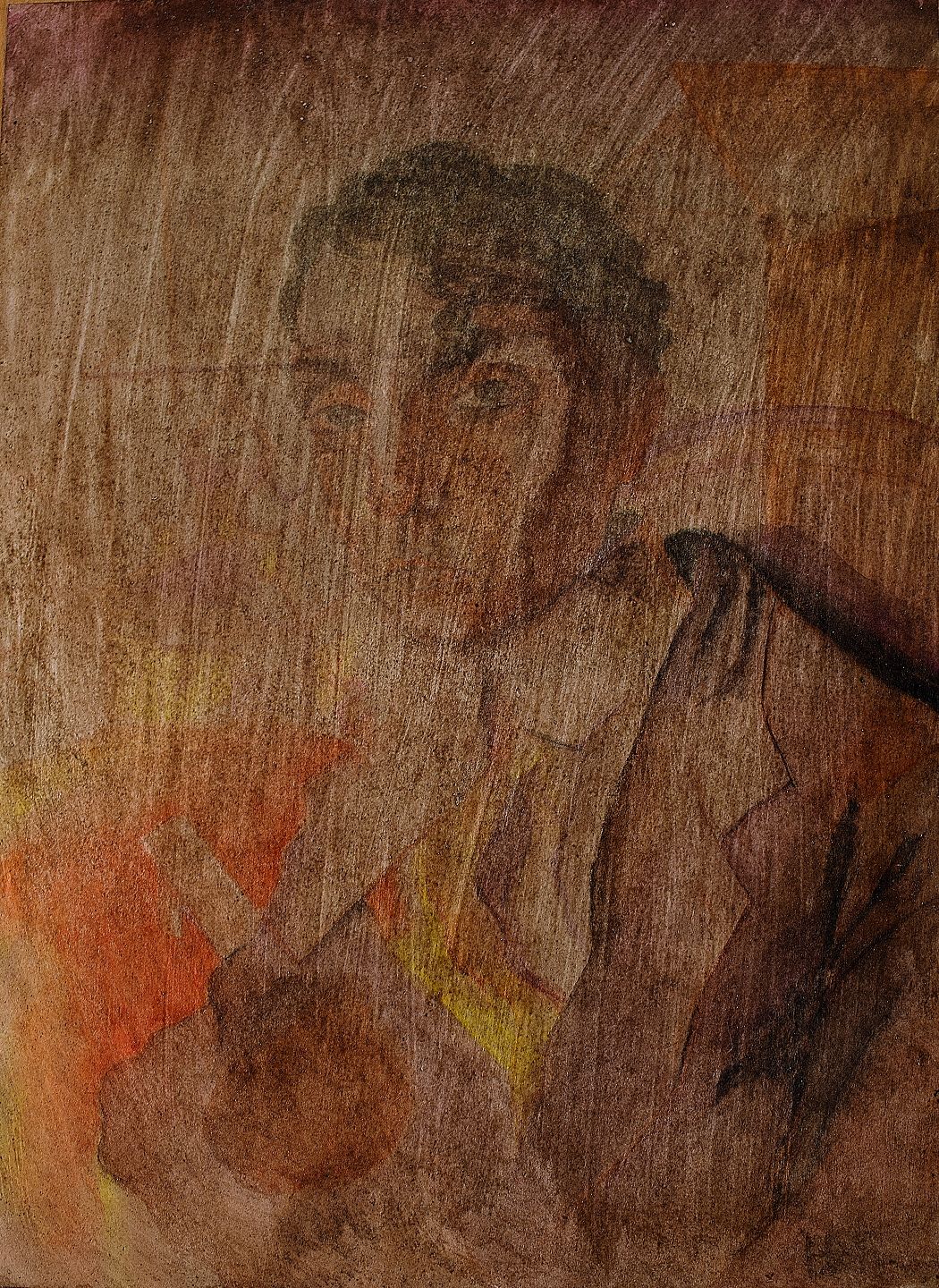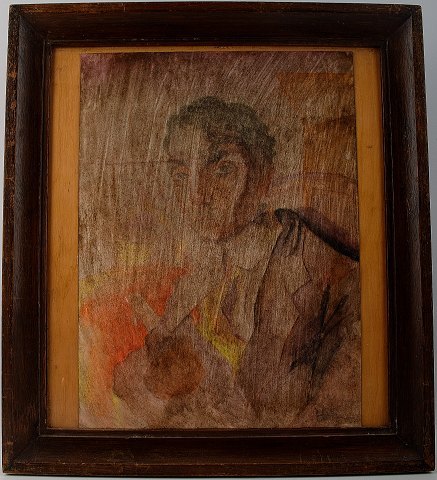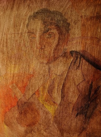 Art deco herreportræt, akvarel på papir klæbet på træplade.