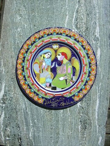 Bjørn Wiinblad juleplatte fra 1975. Diameter 28 cm. 1. sortering. Rosen Thal porcelæn. Flot stand.