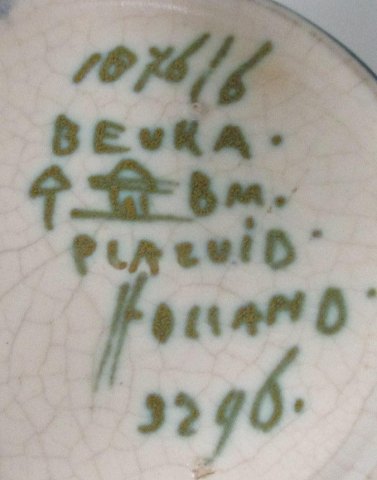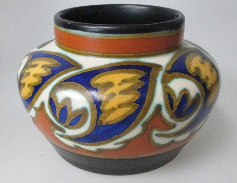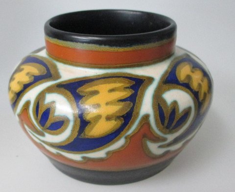 Gouda, vase, 1920 - 1930, Holland. Polykrom dekoration. Betegnet.: 107616 Beuka, Plaevid, Holland 3296. H.: 7 cm. Dia.: 11 cm.