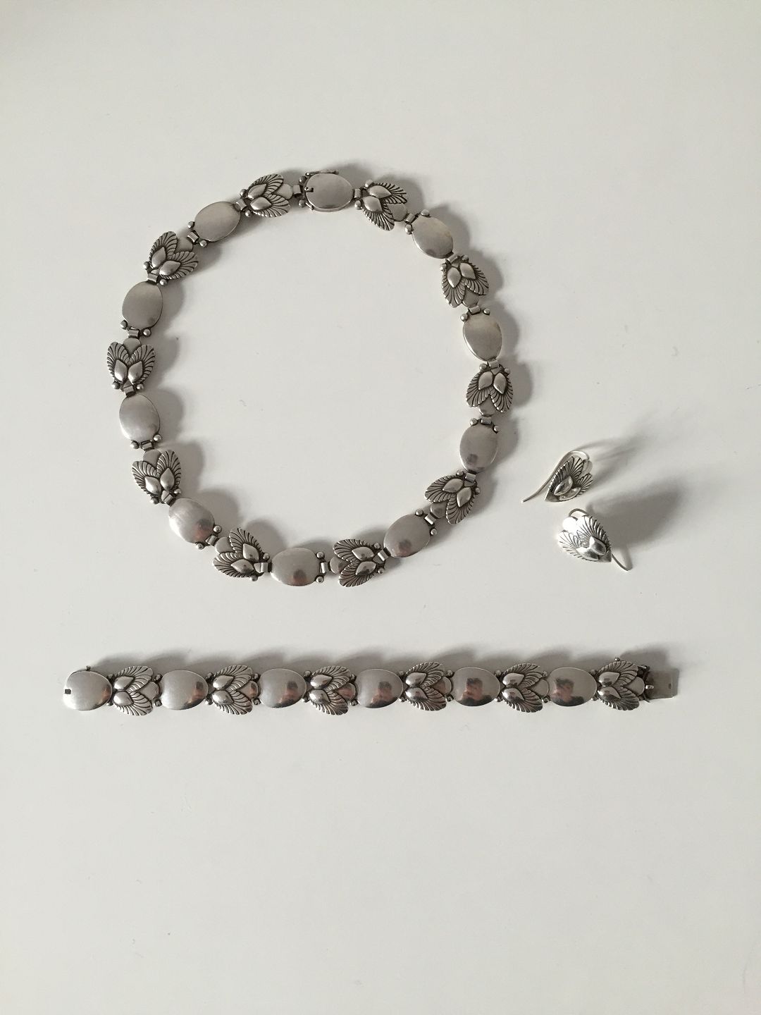Georg Jensen Sterling Sølv Pinje Smykkesæt med halskæde, armbånd og øreringe No 94B. Med engelske import stempler. I god stand.