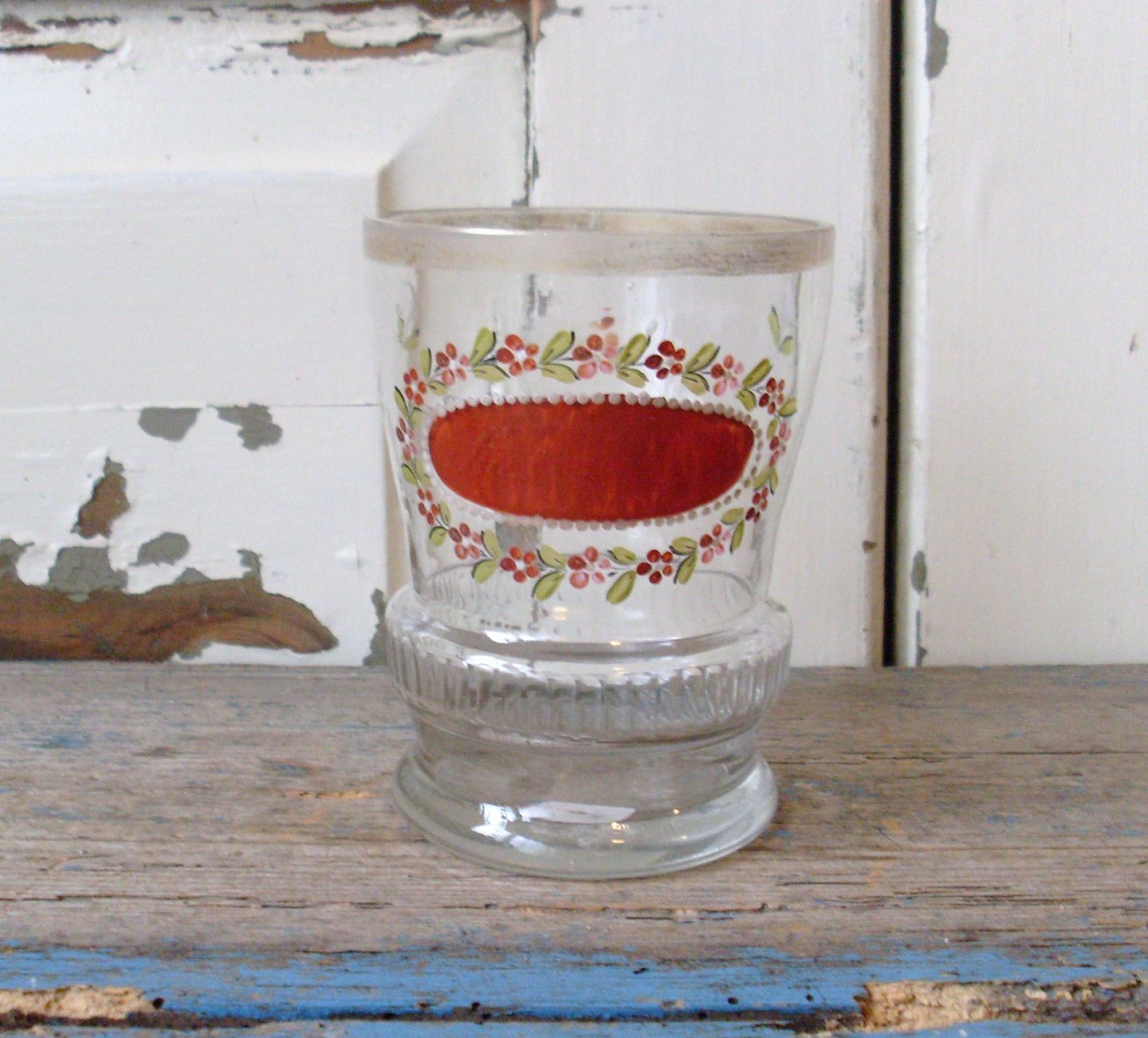 Tysk 1800tals emaljebemalet glas med teksten "Aus Liebe"