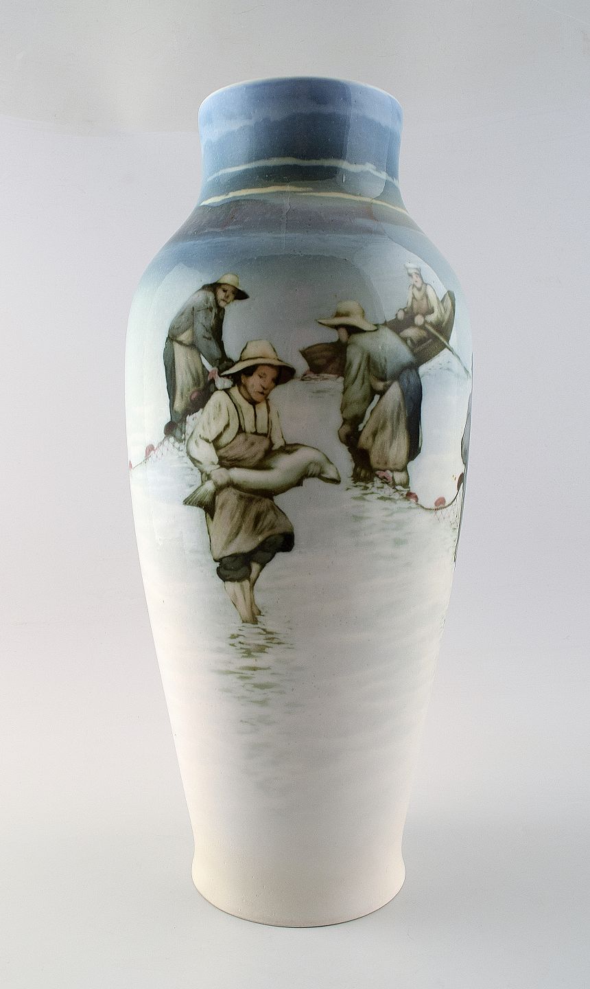 Stor art deco Unika Rörstrand Nils Emil Lundström (1865-1960) porcelænsvase. Dekoreret med fiskere.