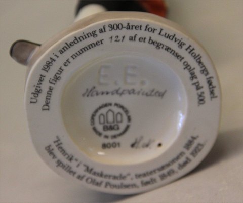 Bing and Grondahl B&G 8001 Holberg's Theater 1884 "Henrik" Maskerade 18.5 cm (Limited 500) Marked with the three Royal Towers of Copenhagen. Bing & Groendahl In mint and nice condition Original Wooden Box and certificate