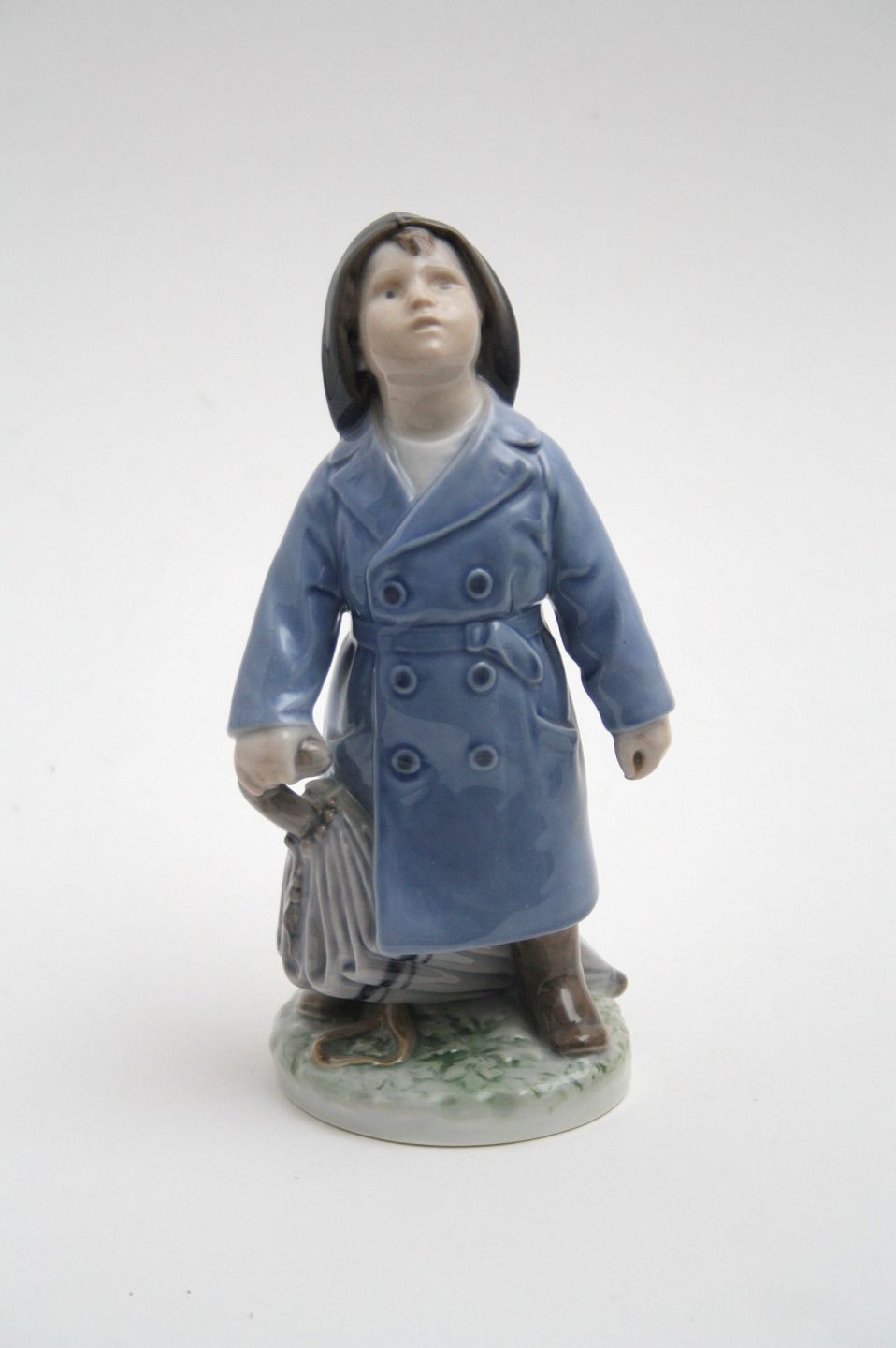 Royal Copenhagen, dreng med paraply designet af Ada Bonfils, produceret frem til 2000. Nr. 3556. I. sortering. Pris: 550 kr. Lager: 3
