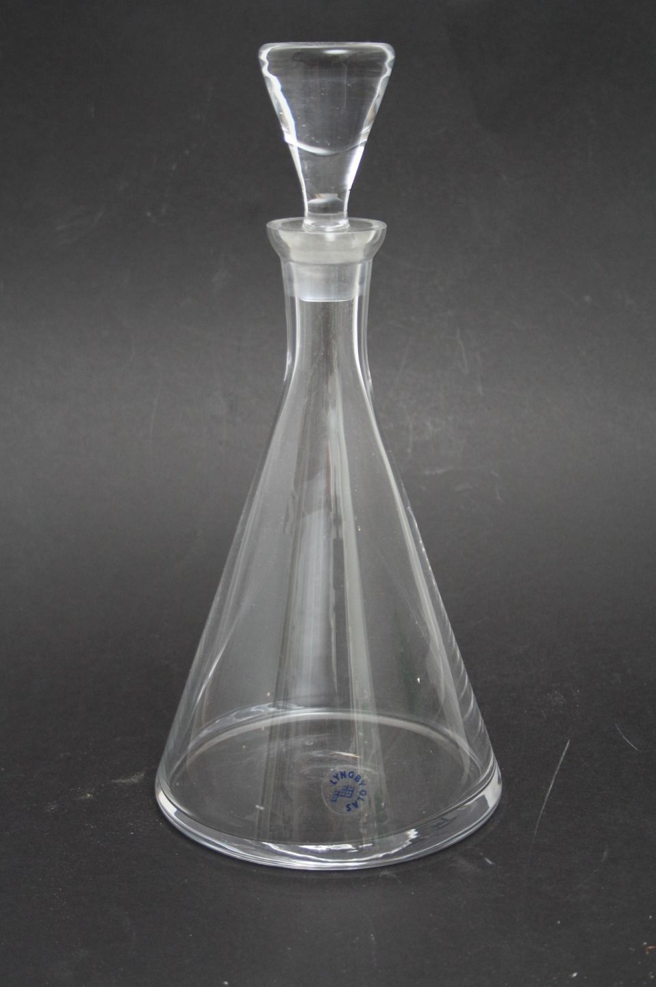 Lyngby Glasværk, Karaffel. Højde 33 cm. Diameter bund 16 cm.