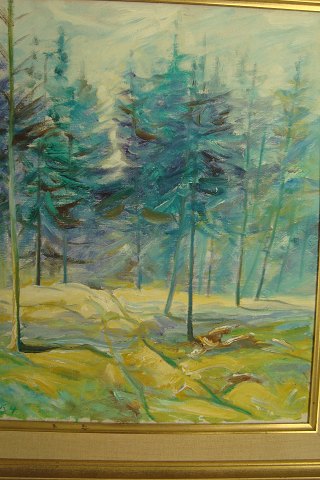 Maleri af Chr. Dybdal - Skovparti 1964 inspireret af den franske impressionisme.