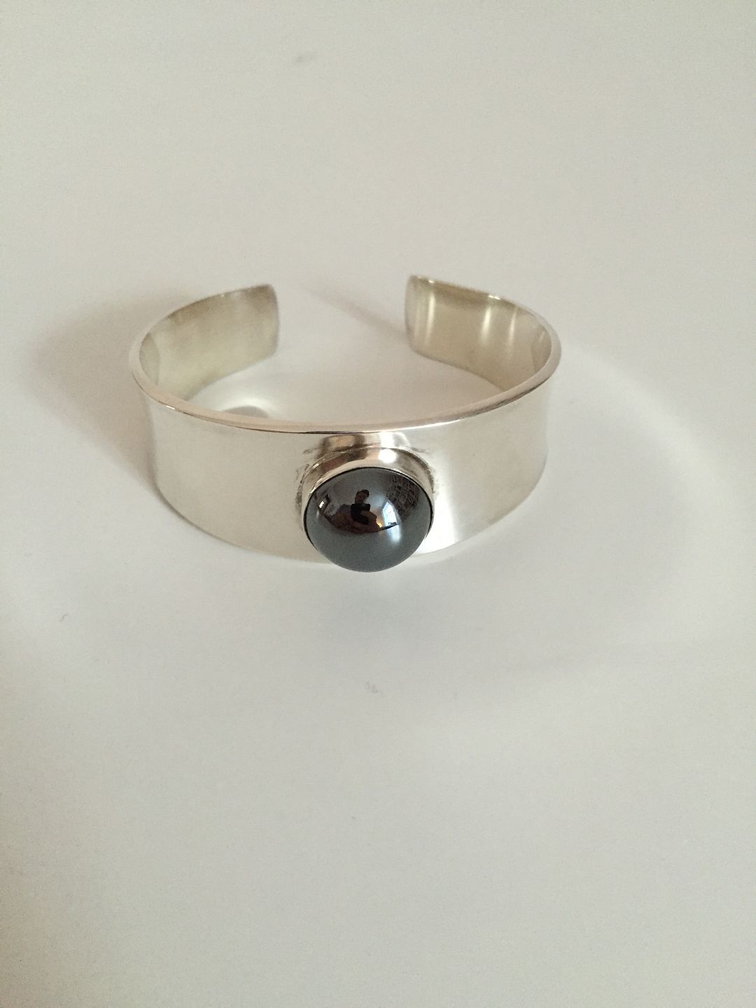 Georg Jensen Sterling Sølv Paul Hansen Armring No 188. Prydet med cabochonslebet hæmatit. Fra efter 1945.