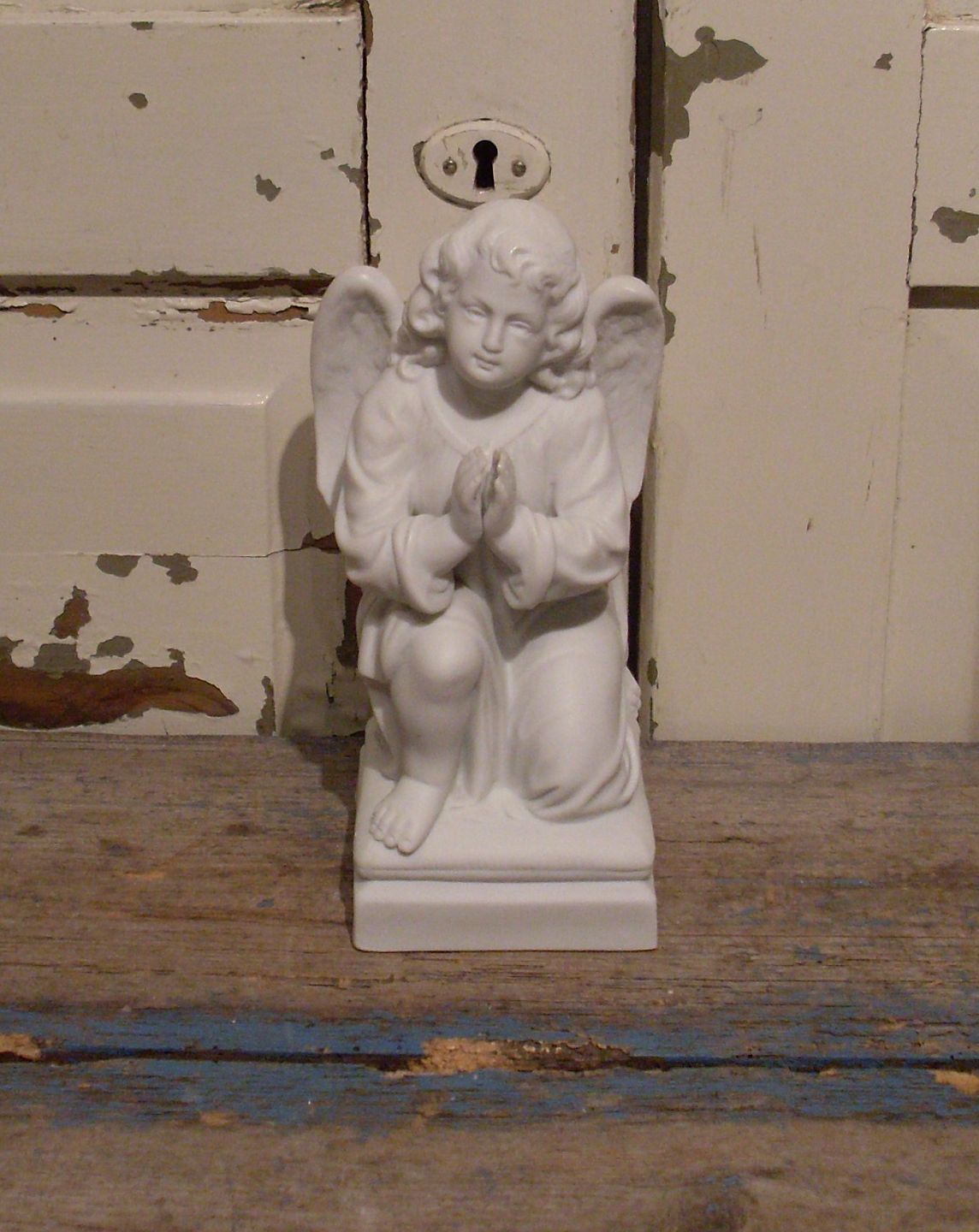 Knælende engel i bisquit 22cm.