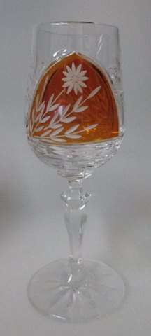 5 Bømiske krystal hedvins glas, 20. årh. Med slibninger i gult overfang. H.: 16,5 cm.