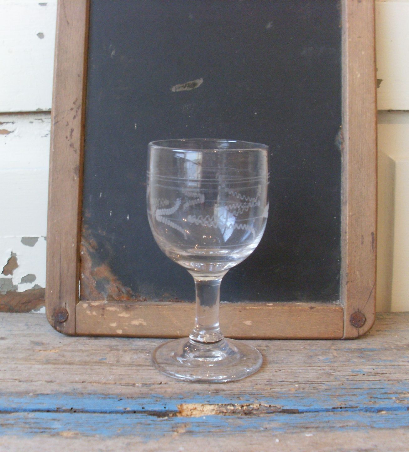 Gammelt fransk vinglas med ætset dekoration.