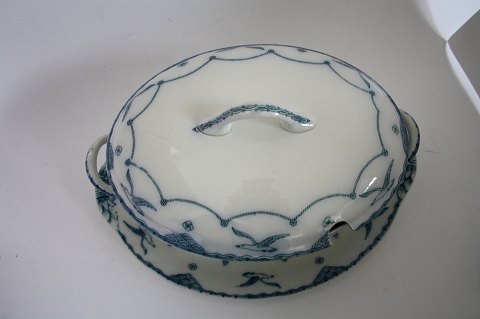 Text available in Danish: Gustavsberg, fajance, Øresund. Stor flot suppeterrin med låg og underfad. God stand. Der er en smule brugsslid på kanten af terrinen se ekstra foto. Suppeterrin 32,5 x 21 cm. Højde 18,5 cm.